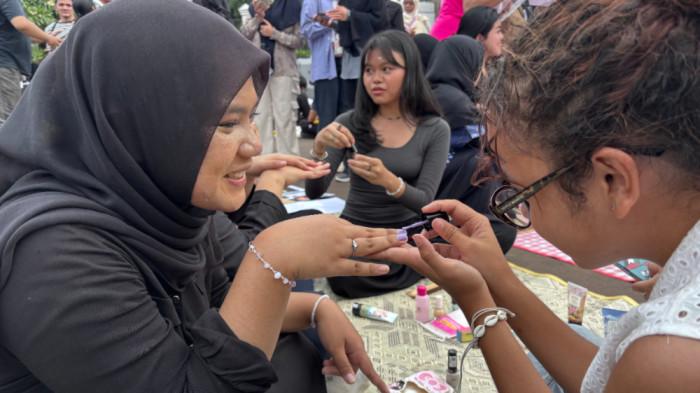 Namun, alih-alih orasi panas atau barisan polisi berhadap-hadapan, aksi ini justru dipenuhi tawa, musik, dan spanduk nyeleneh. Di tengah panasnya aspal Jakarta, mereka membawa kolam pancing mainan, meja pasang kutek gratis, dan tikar piknik simbol kritik damai terhadap parlemen yang dinilai kian jauh dari rakyat.