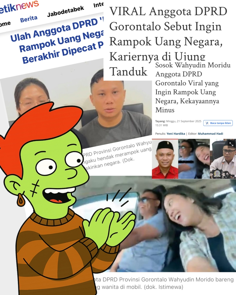 “Membawa hugel (hubungan gelap) langsung ke Makassar menggunakan uang negara, siapa ji? Wahyudin Moridu Anggota DPRD Provinsi Gorontalo nanti 2031 berhentinya, masih lama,” katanya sambil klakson-klakson, membagongkan! (Brot)